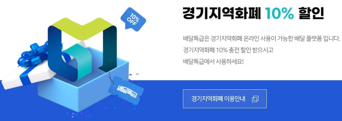 작년을 기준으로 총 30개 경기도 시와 군으로 서비스를 확장했고 경기도 지자체들의 지역화폐 카드를 충전해서 사용하는 분들에게는 충전금액의 10%를 추가로 지급하고 있으며 이 카드로 배달특급을 이용하여 결제시 다음주문때 5% 할인 받을수 있다고 하며 지역화폐 사용으로 충전시 10%를 추가로 지급 받고 배달특급을 계속 사용할 경우 추가 할인 5%까지 받을수 있습니다.