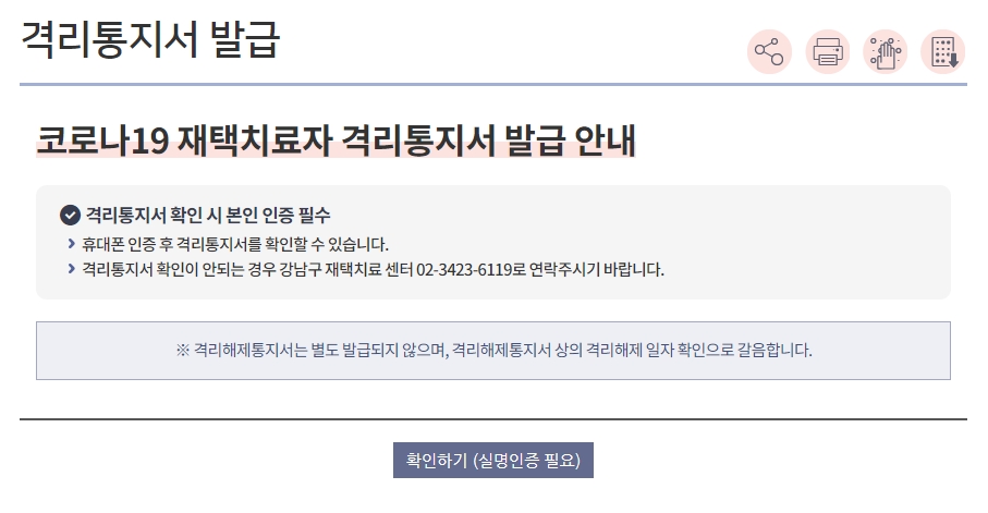 🔻자자격리 통지서 인터넷 발급🔻
